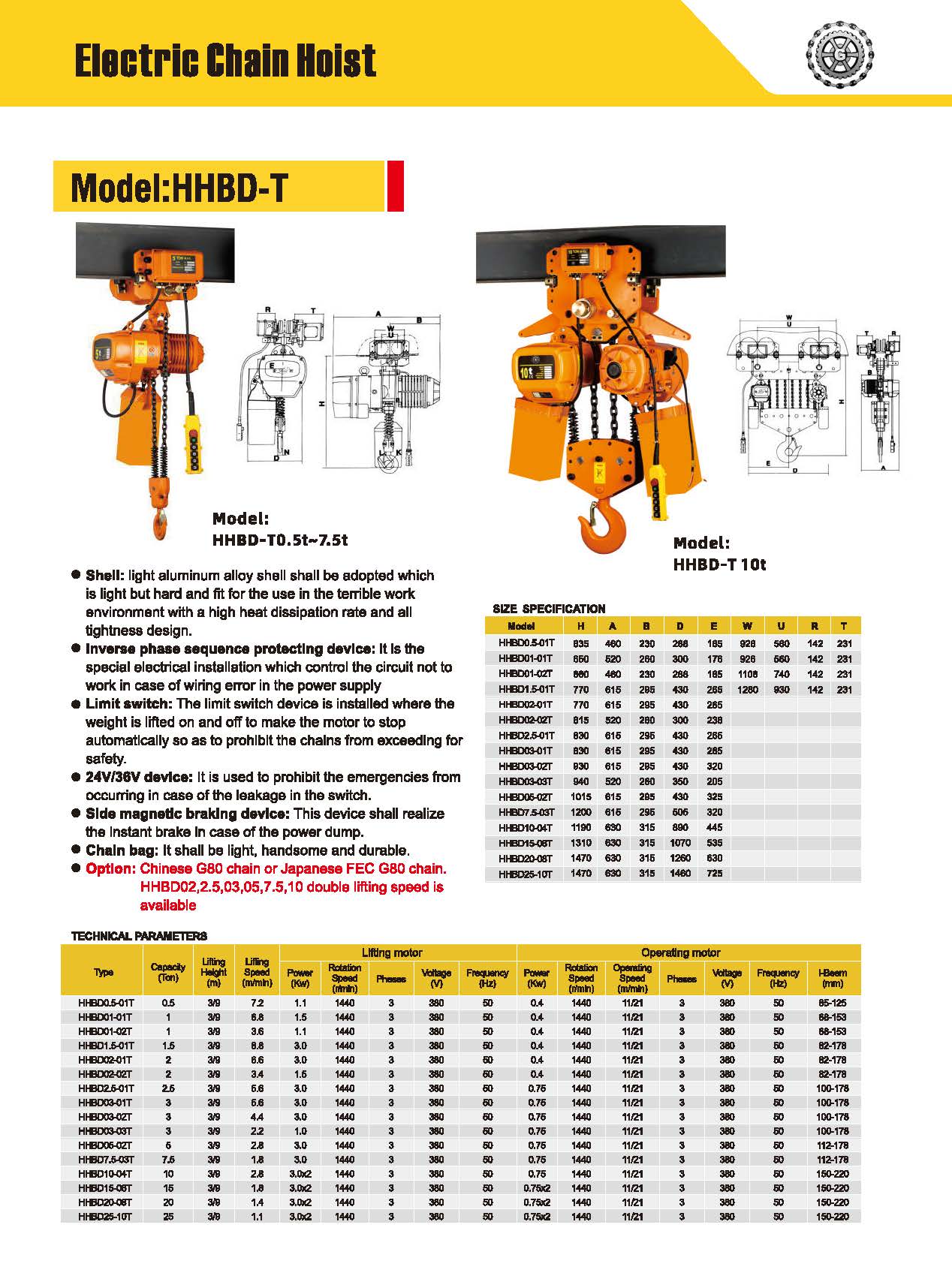 7. Opsi: rantai G80 Cina atau rantai FEC G80 Jepang. HHBDO2, 2.5, 03, 05, 7.5, 10 kecepatan angkat ganda tersedia.